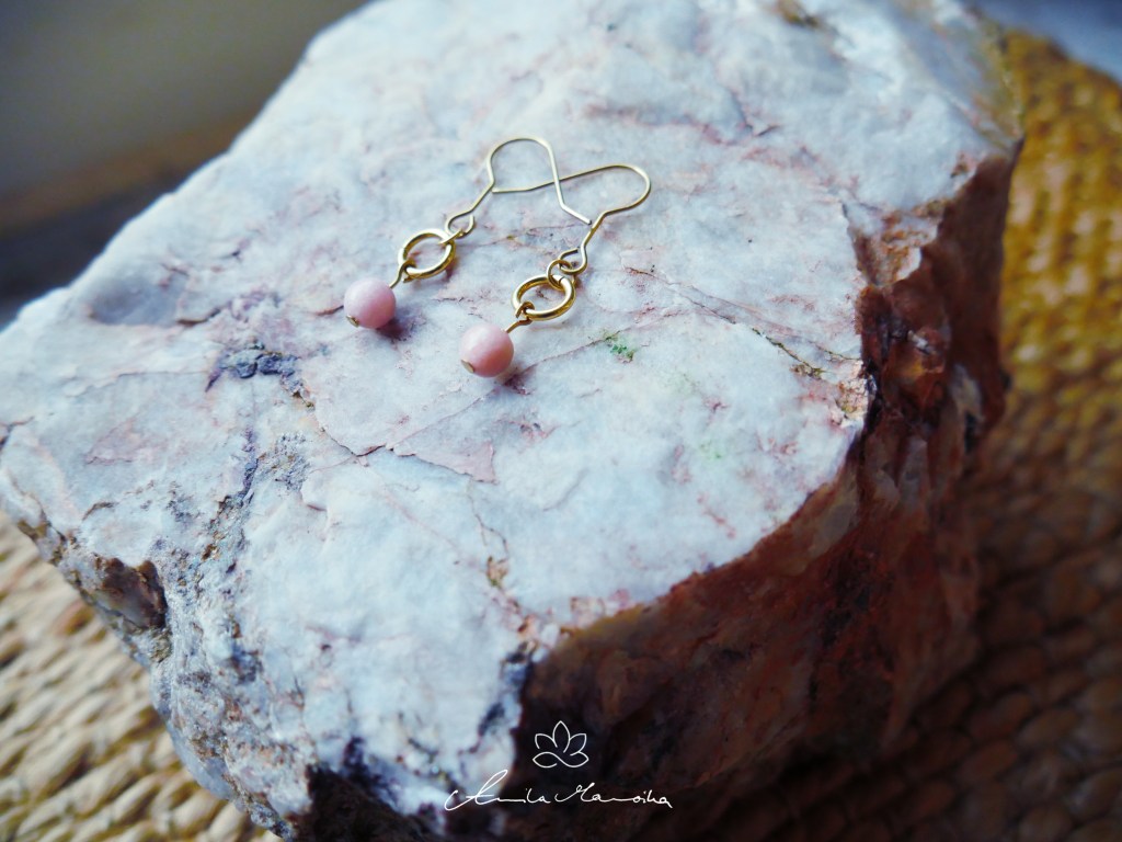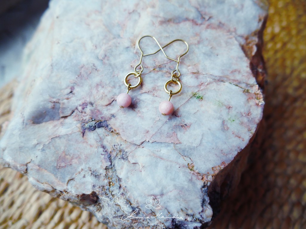 Timeless little brass earrings handmade in addition with gold and two beautiful rose opal healing stones from the Andes. Opal size 6mm. all items are nickel free.