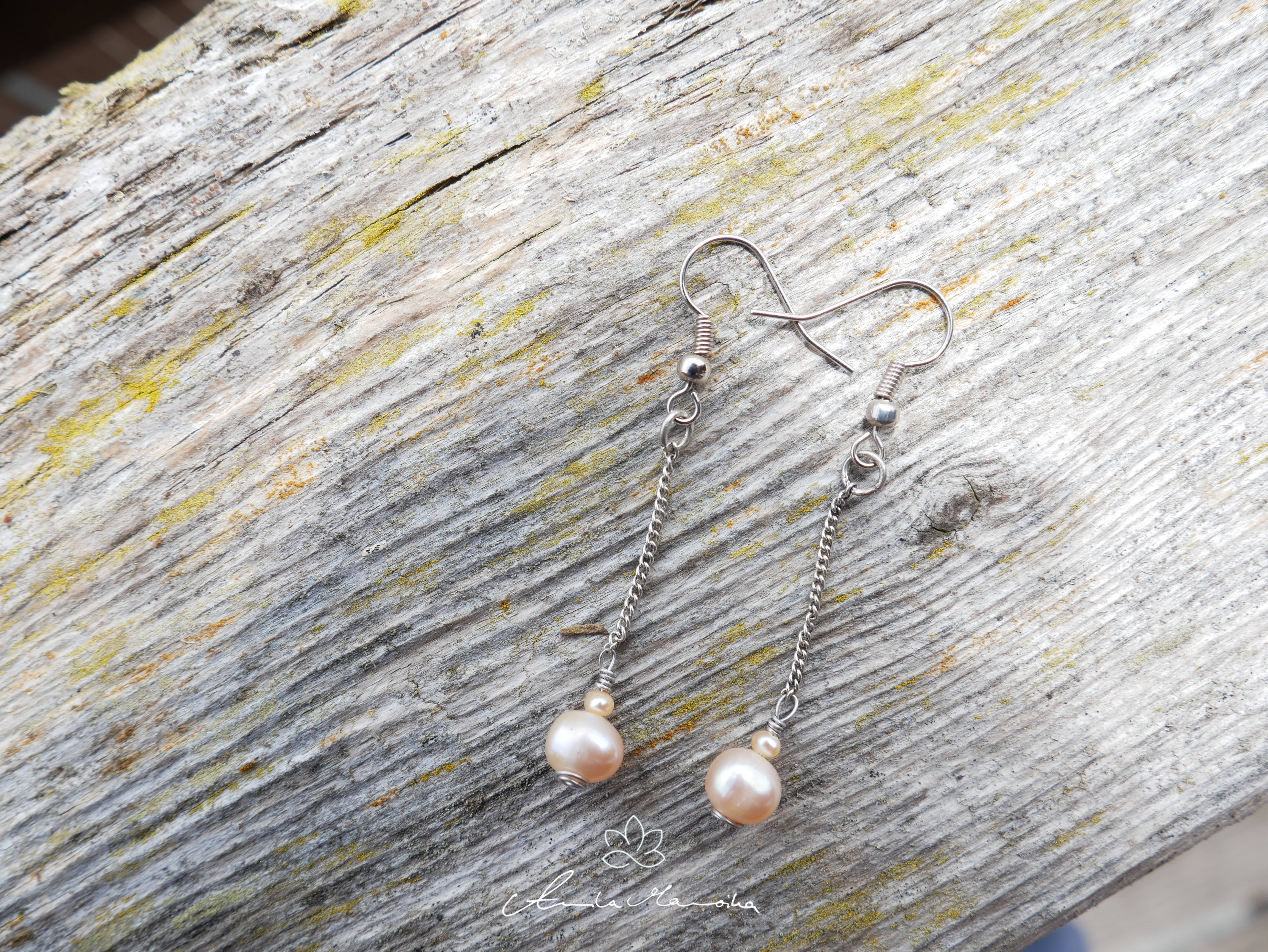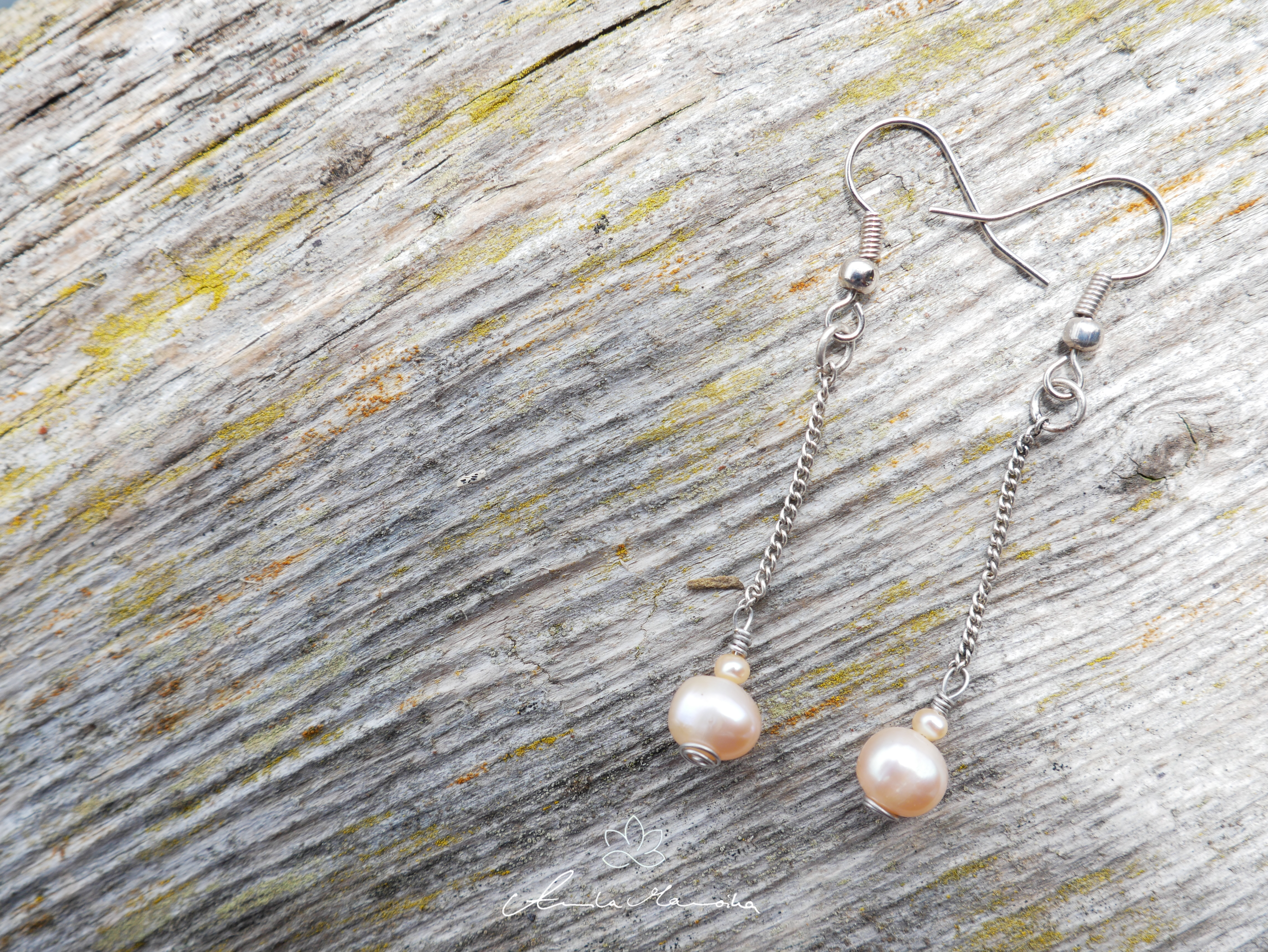 Beautiful silver chain earrings handmade with love combined with two white freshpearl beauties. Pearl size 6 mm. All items are nickelfree.