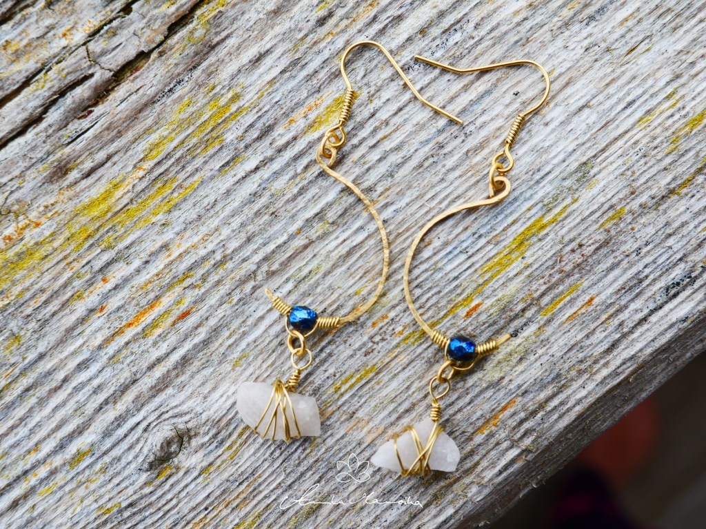 Beautiful elegant brass earrings with royal azure blue glas perls. They are full etched fire polished having a matt look. These earrings belong to my milky crystal collection and carry the sweet energy of my wood where I collect those beautiful white high vibrational crystals. All items are nickelfree.